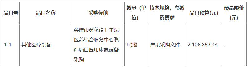 英德市黃花鎮衛生院醫養結合服務中心改造項目醫用康復設備采購招標公告