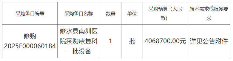 [江西省公共資源交易平臺]修水縣南圳醫院(修水縣綜合托育中心)采購康復科一批設備項目公開招標公告