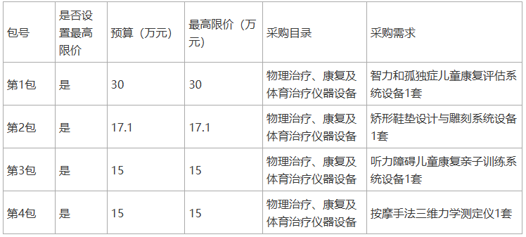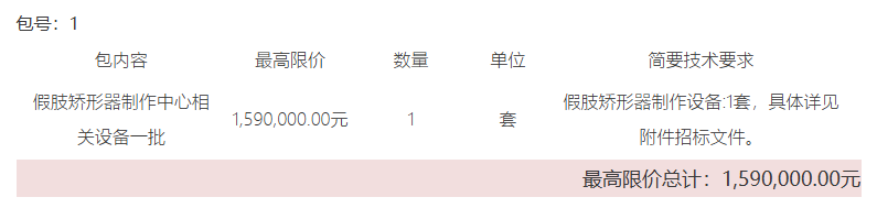 假肢矯形器制作中心相關設備一批公開招標公告