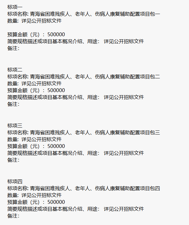青海省困難殘疾人、老年人、傷病人康復輔助配置項目公開招標公告