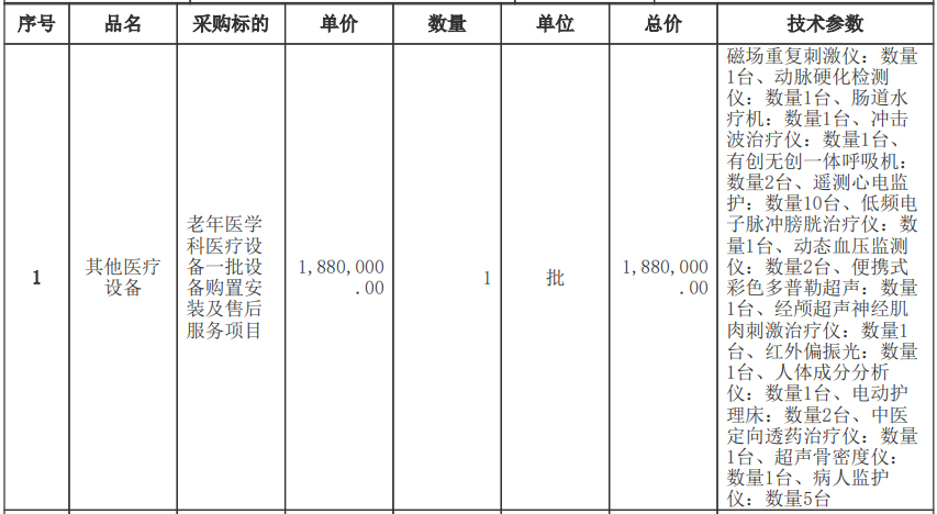 西安醫學院第一附屬醫院老年醫學科醫療設備一批設備購置安裝及售后服務項目招標公告