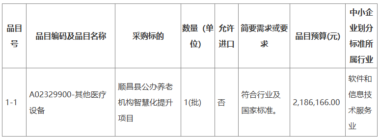 順昌縣公辦養老機構智慧化提升項目(二次)公開招標招標公告