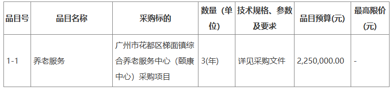廣州市花都區梯面鎮綜合養老服務中心(頤康中心)采購項目招標公告