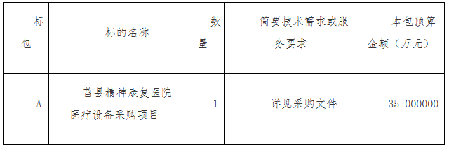 莒縣精神康復醫院醫療設備采購項目公開招標公告