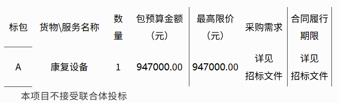 采購需求:康復設備購置,具體詳見“第四部分采購需求 ”。