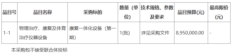 采購需求:咸寧市中心醫院康復醫學科醫療設備一批,本次招標劃分2個包,分別是:①包一:康復設備;最高限價67萬元。②包二:疼痛設備;最高限價66萬元。具體見設備清單。