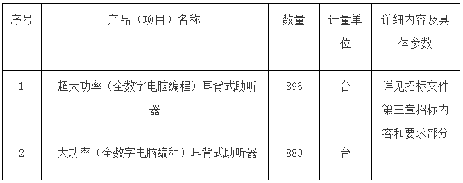 項目概況:本次招標項目含對患者的篩查、取耳樣、耳模制作及助聽器的驗配、調試。