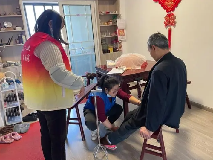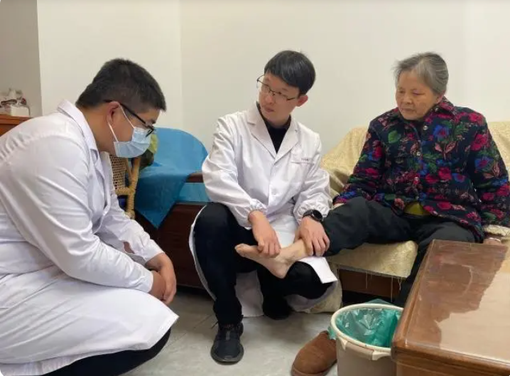 經康復師檢查后發現,她的小腿處有水腫現象,便開始為她進行按摩等一系列居家康復鍛煉,同時叮囑她多坐少臥,嘗試借助拐杖走動,促進腿部血液循環。