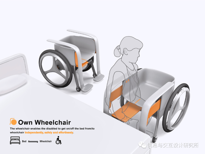 腿部殘疾人士在使用輪椅的過程中,上下床是一個很不方便的過程,一般需要其他人或輔助工具的幫助來完成,如果獨自上下床,則存在摔倒的危險。Own-Wheelchair無障礙過床輪椅專為腿部殘疾人士設計,幫助他們在使用輪椅時能夠獨自、安全、省力地上下床。