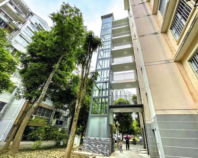 ▲南寧部分老舊小區已加裝電梯,解決老人上下樓難題