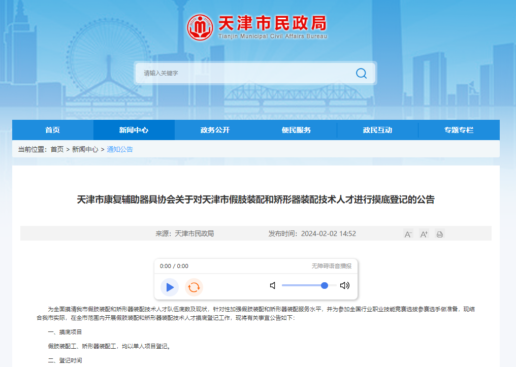 近日天津市康復輔助器具協會發布公告,在全市范圍內開展假肢裝配和矯形器裝配技術人才摸底登記工作,為全面摸清我市假肢裝配和矯形器裝配技術人才隊伍底數及現狀,針對性加強假肢裝配和矯形器裝配服務水平,并為參加全國行業職業技能競賽選拔參賽選手做準備。
