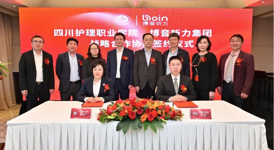3月22日,四川護理職業學院與博音聽力有限公司在錦江賓館簽署戰略合作協議,將共同建設全國首個聽力康復產業學院,推動我國聽力康復行業及產業發展,行業專家、學校代表80余人出席簽約儀式。