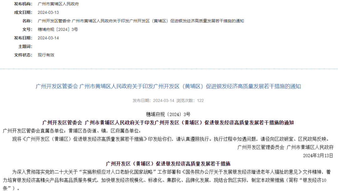 近日,廣州開發區管委會 、廣州市黃埔區人民政府印發《廣州開發區(黃埔區)促進銀發經濟高質量發展若干措施的通知》,提出若干措施促進銀發經濟。