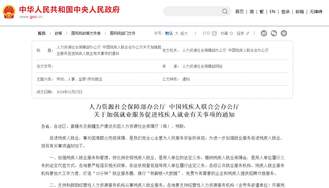 人社部、中國殘聯聯合印發通知