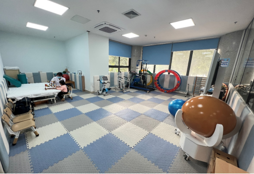 2024年4月17日,廣州醫科大學附屬番禺中心醫院康復醫學科兒童康復治療室正式啟用。配備了多感官訓練系統、互動球多維運動系統、兒童心理健康評估與分析系統、語言康復訓練平臺等新設備。主要開展項目有兒童大腦發育遲緩導致的運動障礙的評估和訓練、S-S兒童語言發育遲緩測評、0-6歲兒童神經心理發育測評、構音檢查等。