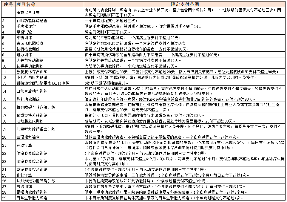 另外19個醫療康復項目放到了康復科,其中,運動療法、作業療法和平衡訓練的支付期限都提高到了180天。