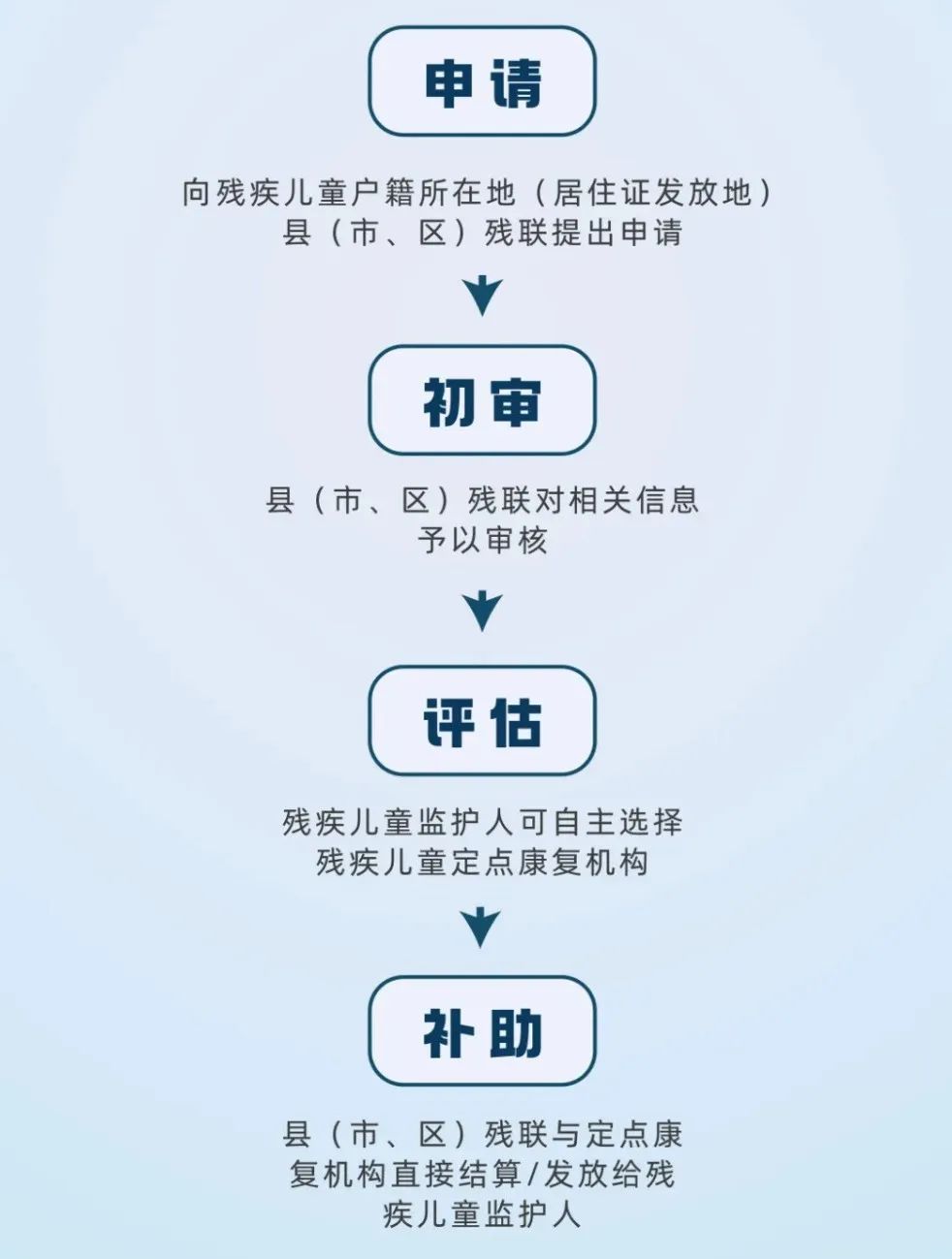 可向戶籍所在地或居住證所在地的縣(區、市)殘聯申請或委托所選擇的定點康復機構代為申請。