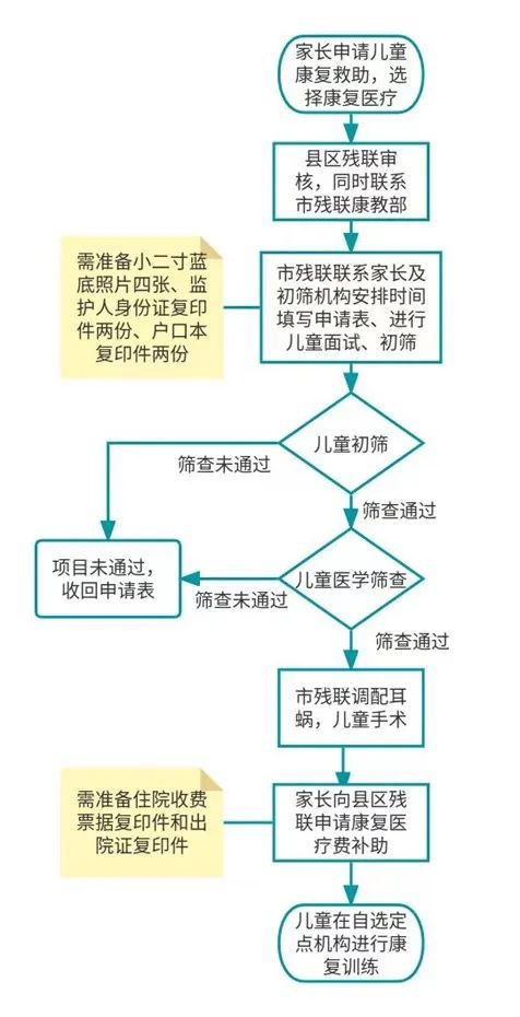 按照“提交申請、定點醫院醫學篩查、省聽力語言康復中心篩查評估”的流程申請救助。監護人可通過以下方式提交申請材料。