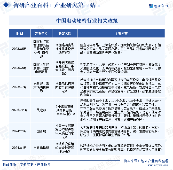 中國政府高度重視老年人福祉和康復輔助器具產業的發展,相繼出臺了一系列政策,旨在推動產業創新和升級。這些政策不僅提供了稅收優惠、資金補貼等激勵措施,還鼓勵了金融機構和社會資本對電動輪椅行業的投資,促進了行業技術進步和市場擴大。政府的這些舉措為電動輪椅行業的發展提供了良好的政策環境和資金支持。