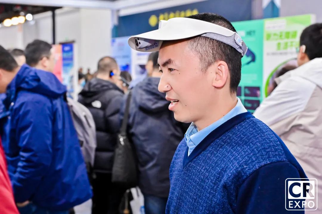 (觀眾在2024中國國際福祉博覽會體驗“智能導盲帽”)