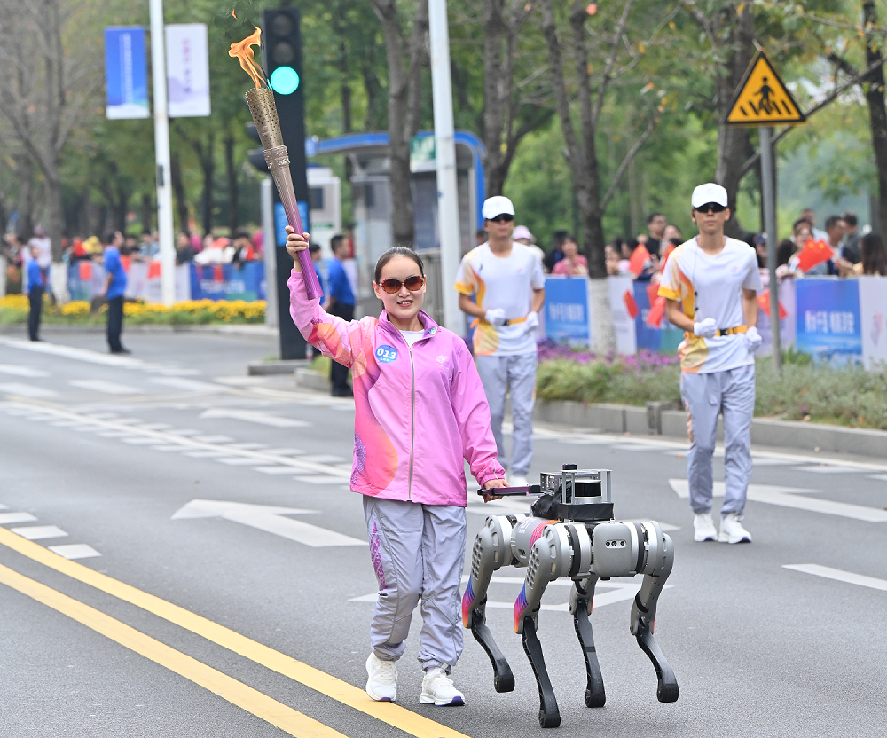 宇樹科技旗下另一款智能四足機器人B1也可輔助盲人便捷出行。其搭載最新的雷達與視覺技術,擁有高精度的環境感知與精準的導航能力,環境適應性強,能夠自主避障,進行路況的實時調整。同時也能通過語音的方式提醒用戶,從而保障用戶的安全出行。宇樹B1也在杭州第四屆亞殘運會的火炬傳遞儀式上擔任了火炬手蔡瓊卉的電子導盲犬,B1機器狗也成功引領蔡瓊卉進行了火炬傳遞,為她提供了穩定的支持。