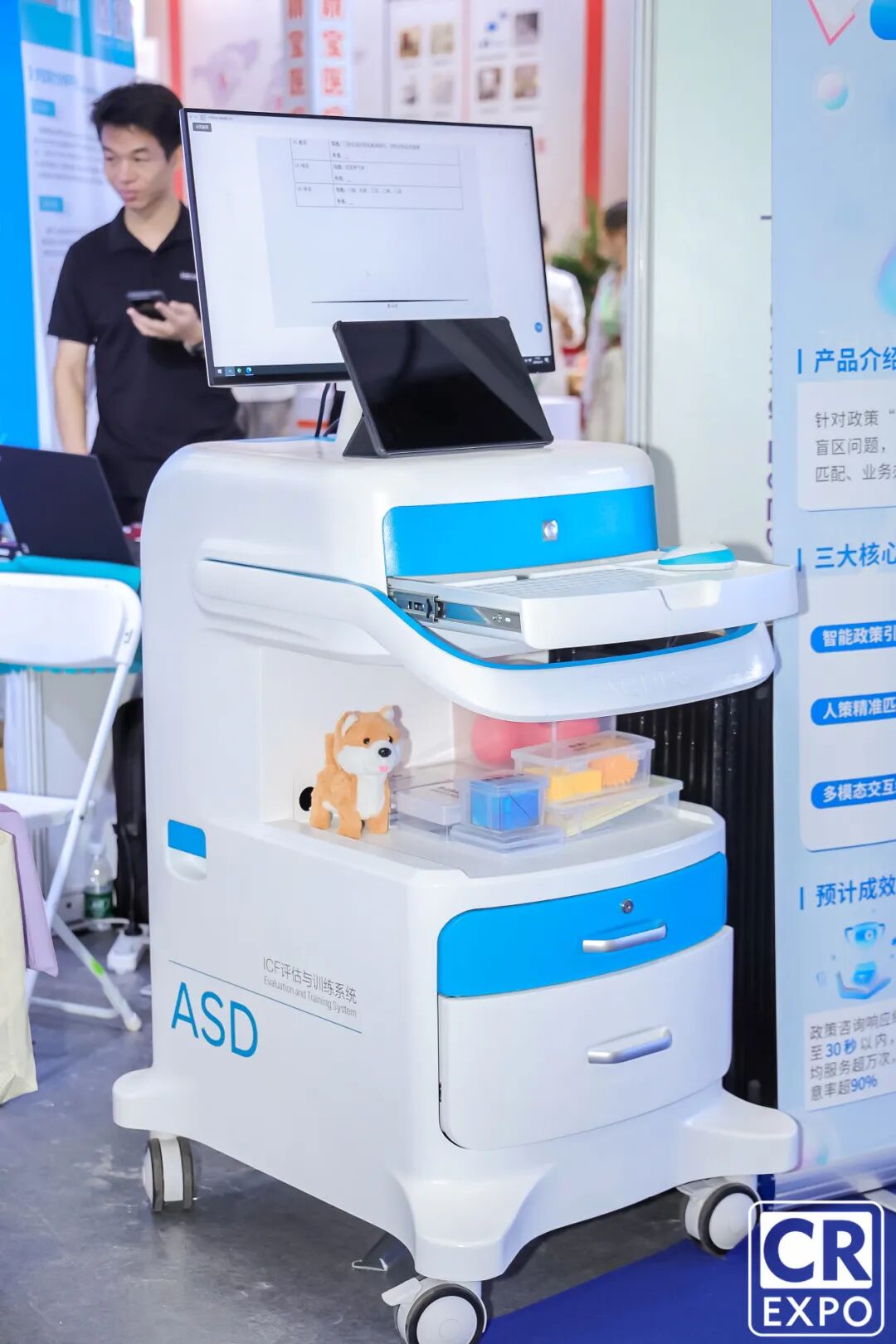 在合肥哈工艾斯德康智能科技有限公司展位,另一項“精準康復” 技術——孤獨癥多模態智能化輔助診斷系統同樣引人關注。演示中,孩子只需佩戴簡易腦電設備,系統就能通過分析腦電信號、結合行為評估數據,在半小時內給出初步診斷建議。“對孤獨癥兒童來說,‘早發現、早干預’至關重要。”研發人員表示,該系統已在全國20多家康復機構試用,評估效率是傳統方式的10倍,能幫助更多孩子抓住康復“黃金期”。