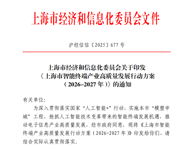 近日,上海市經濟和信息化委員會印發《上海市智能終端產業高質量發展行動方案(2026-2027年)》的通知,共20條具體措施。其中,在激發銀發經濟終端活力方面,將圍繞健康監測、感知提升、安全預警、便捷通訊等功能需求,支持人工智能助聽器、自動駕駛輪椅、智能導盲設備、穿戴監測設備、家庭情感陪伴終端、智能仿生假肢等創新產品發展。推進智能終端功能優化,向普惠化、智能化、情感化方向升級。搭建老年、殘疾人群體與科技產品連接橋梁,加速終端在養老和殘疾人養護等領域的應用落地。