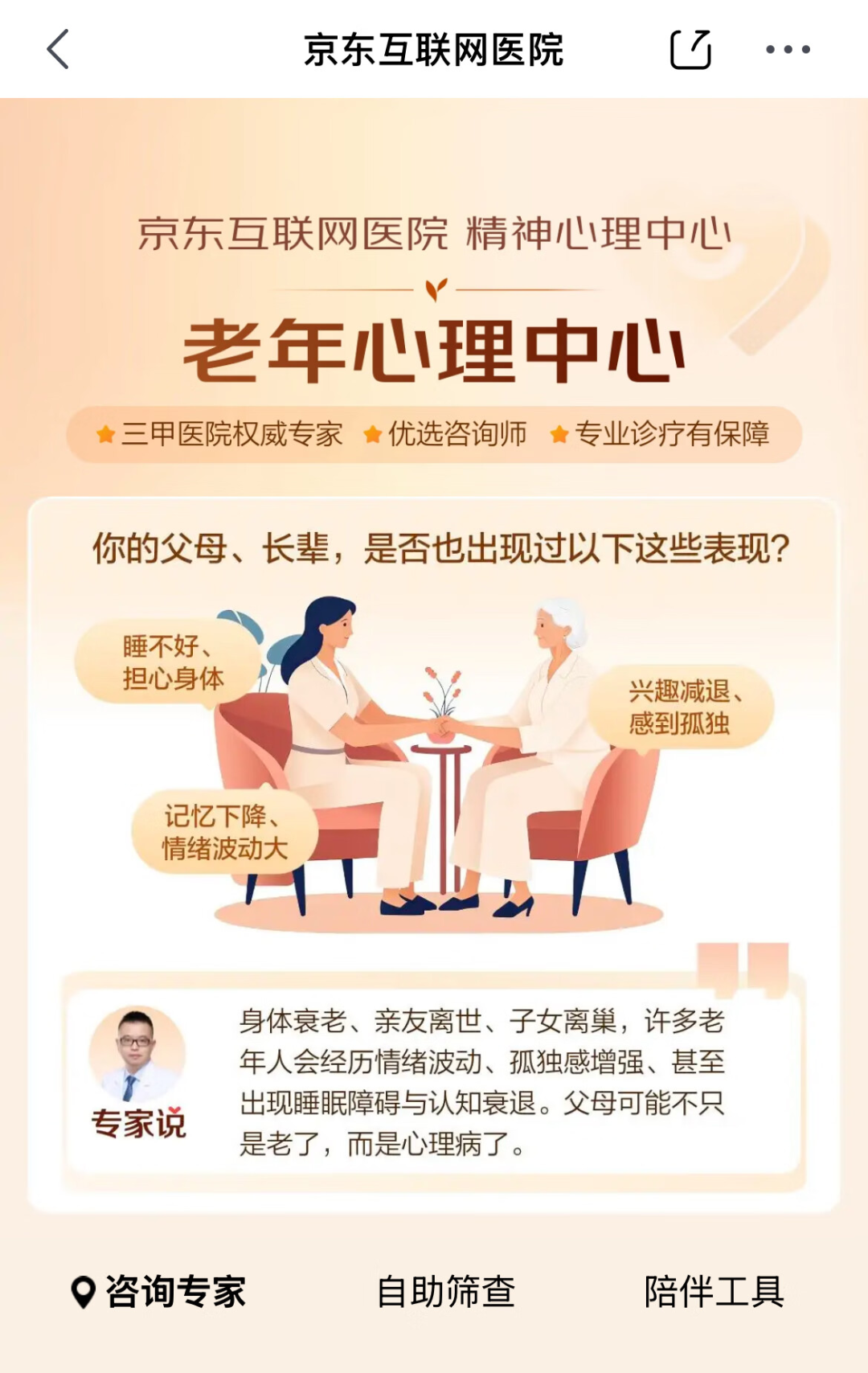 京東互聯網醫院上線老年心理門診